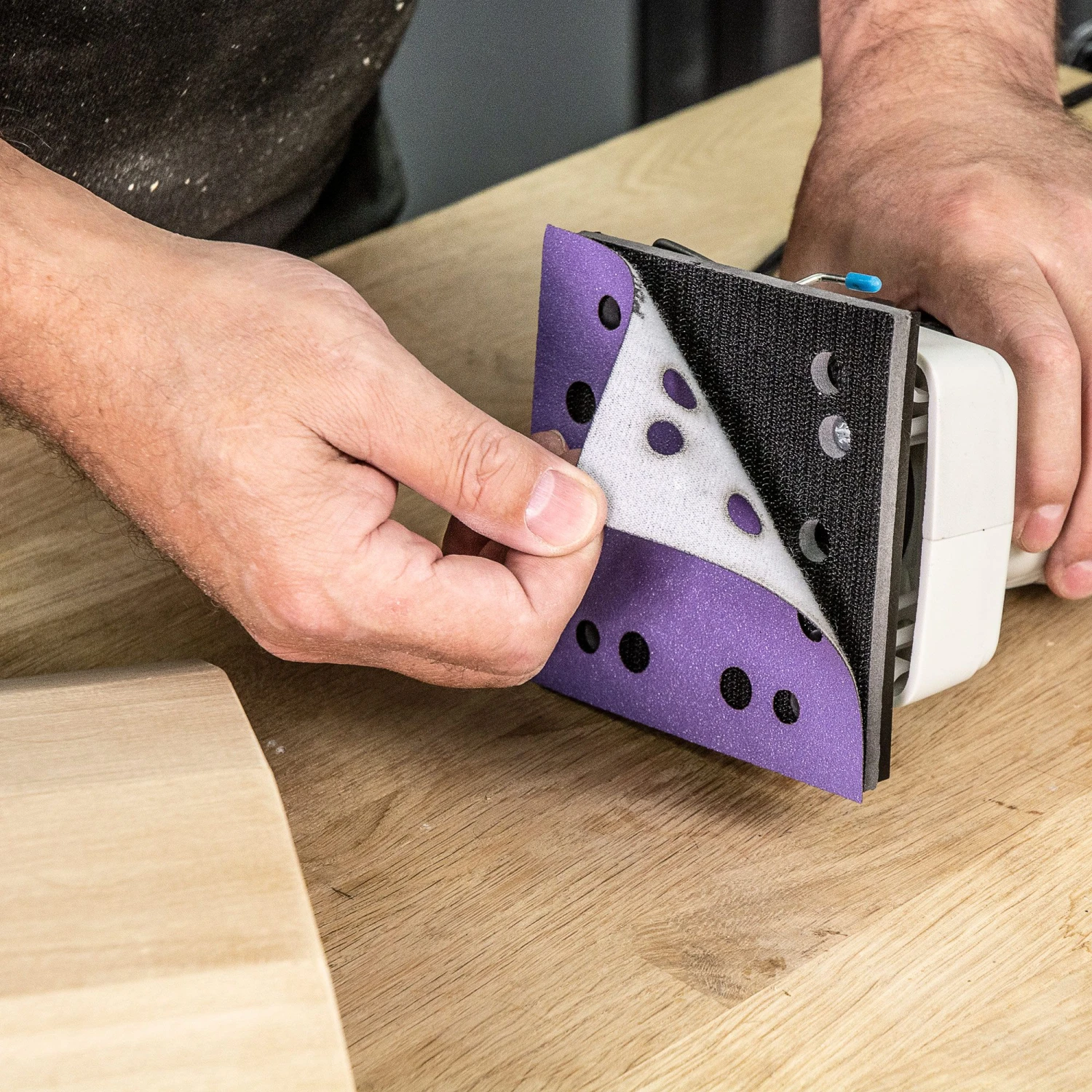 - HOOK AND LOOP FIXING – Secure fix to the power tool base. Fast easy removal, increasing productivity when working through grits