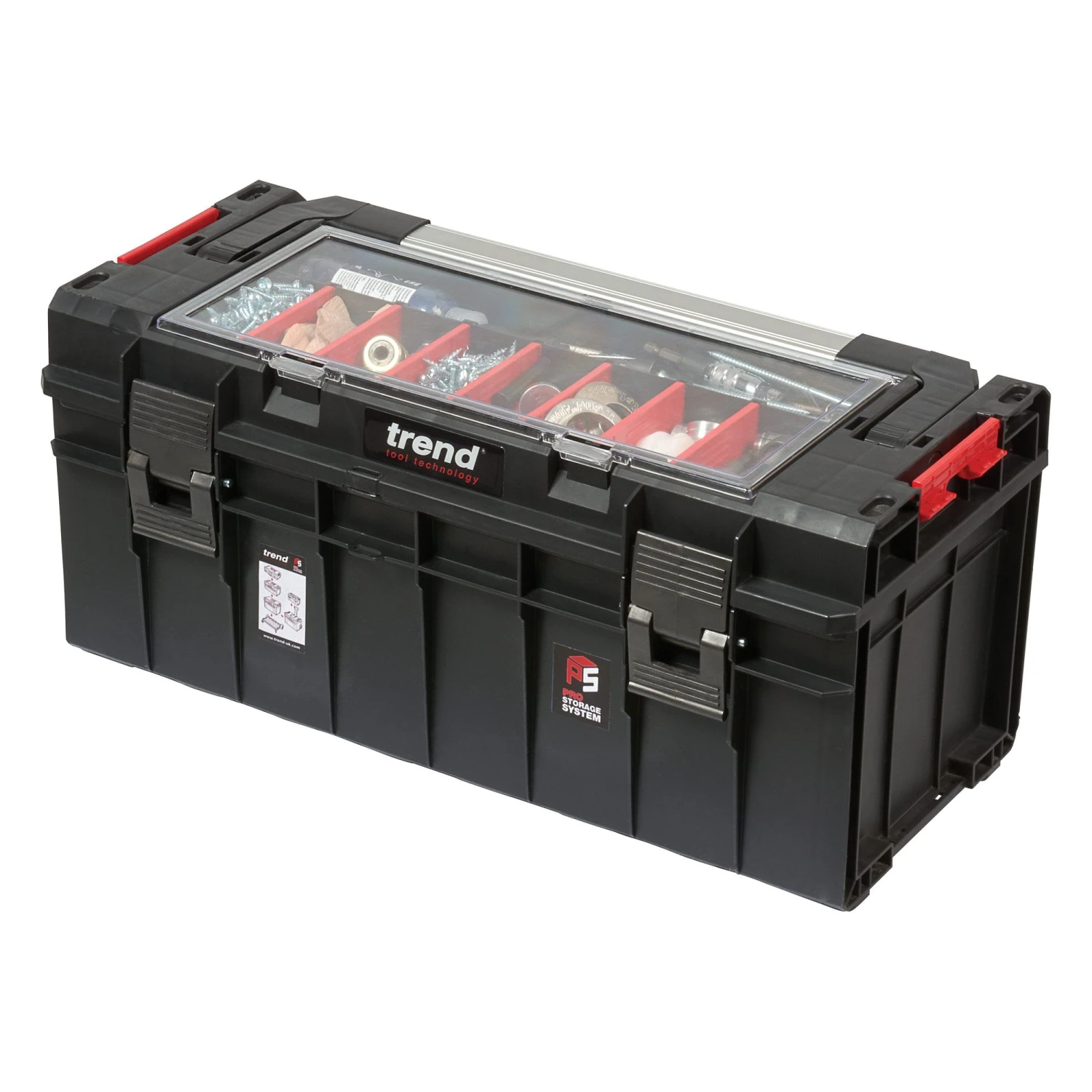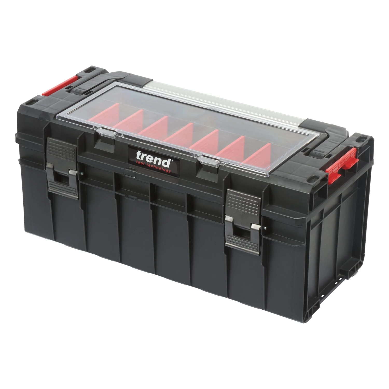 - Lid had storage are with removable dividers and clear polycarbonate lid for fast identification and access to smaller tools, fixings and accessories