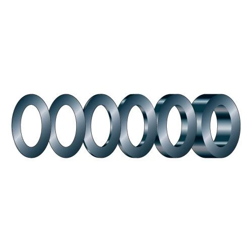 A set of thirteen 8mm spacers and shims.
