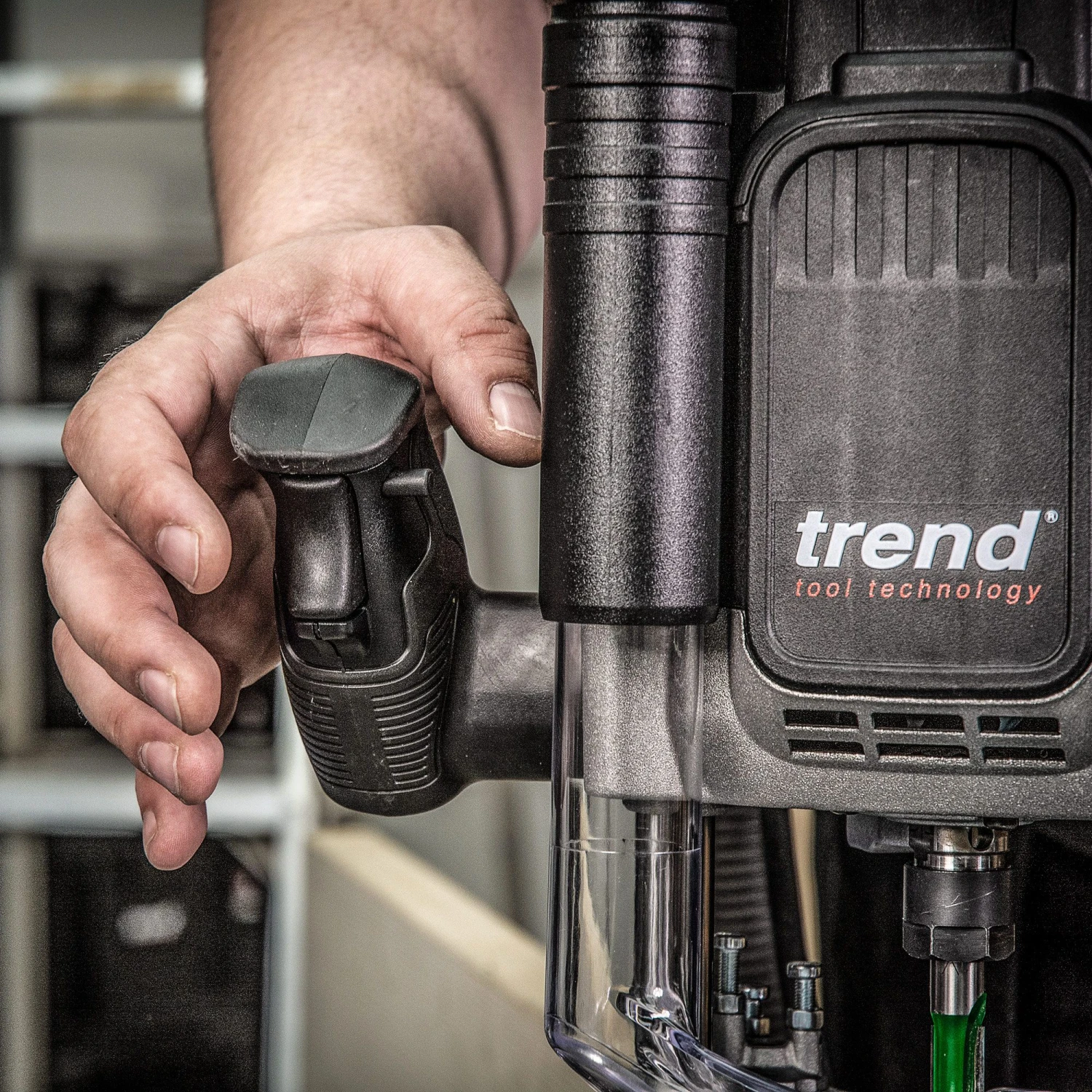 - Integrated Power Trigger bult into the inclined handle for precise and safe control of the router’s on/off function.