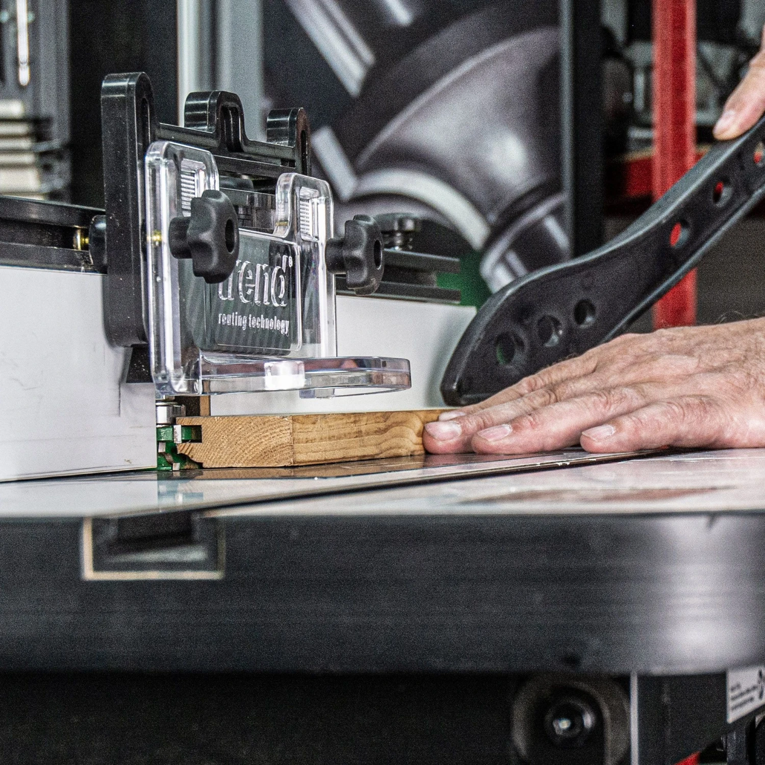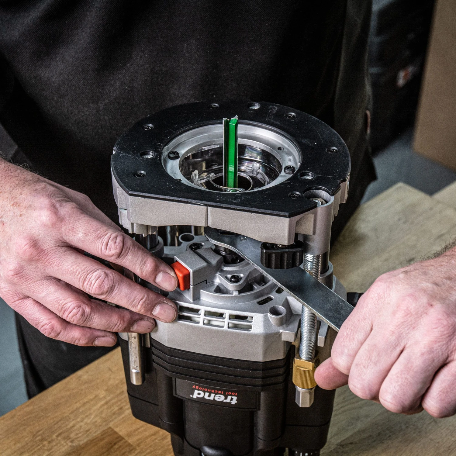 - Precision Centring System to ensure perfect concentricity between cutter and guide bush for pinpoint accuracy with routing jigs.